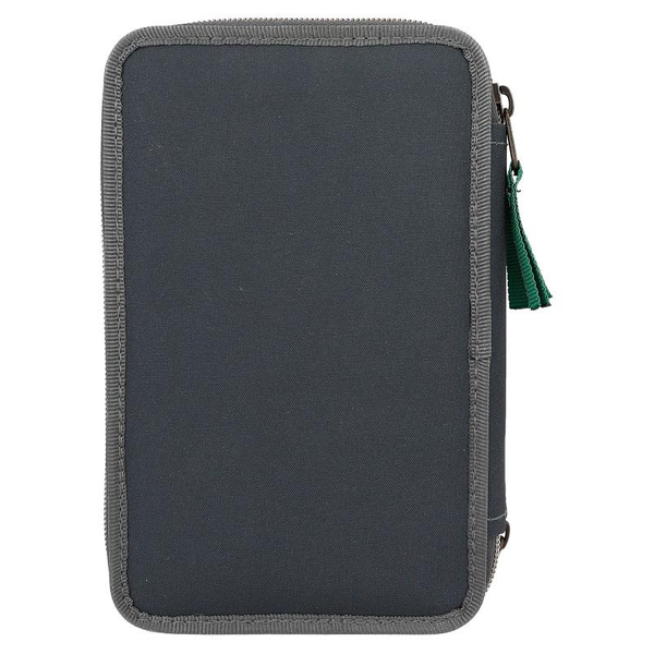 Dit is echt een dino spektakel! Het donkergrijze etui van Dino World heeft een grote afbeelding van een T-rex, die op neopreen gedrukt is, op de voorkant. Door een druk op de knop gaat voor ca. 15 seconden licht branden en schitteren de ogen, de bek en de sterren. De drie aparte vakken zijn compleet gevuld met 18 kleurpotloden, 18 viltstiften, 2 potloden, een gum, puntenslijper, liniaal, plakstift en een klein vakje met klittenband. De batterijen voor de LED lampjes zijn vervangbaar.