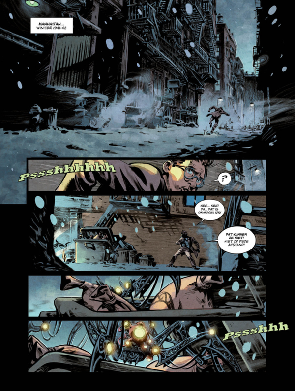 New York, zomer 1942. “Geruchten over de landing van Duitse onderzeeërs aan de oostkust... Mysterieuze verschijningen en verdwijningen aan de oevers van de East River... Onder toezicht plaatsing van Edison’s laboratorium door de FBI... Verschrikkelijke experimenten en geheime wapentesten door de Japanse strijdkrachten in de Stille Oceaan... New York zal spoedig worden ondergedompeld in de orkaan van gebeurtenissen die de rest van de wereld al teisteren...
