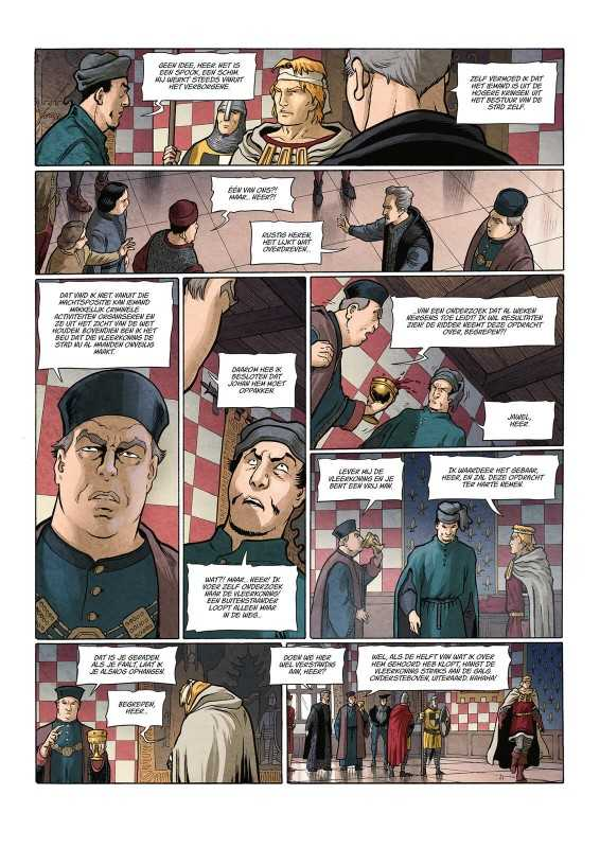wordt alsnog tot de strop veroordeeld. Maar omdat de Rode Ridder een aanslag verijdelde op een patrouille van de burggraaf wordt zijn straf omgezet. Hij krijgt de opdracht de vleerkoning op te pakken, de onbetwiste leider van de onderwereld in Brussel. Helaas is ook de baljuw belast met het onderzoek en die saboteert Johan tijdens het zijne. Tot overmaat van ramp blijkt de vleerkoning steeds op de hoogte te zijn van alles wat er op het hof van de burggraaf beslist wordt én is hij uit op de nieuwe kroon van de Duitse keizer. Het is de taak van de burggraaf om die kroon ongeschonden aan de keizer te overhandigen. Niet veel later vallen op het hof van de burggraaf de eerste slachtoffers en verdwijnt de kroon spoorloos uit de schatkamer. Aan Johan om het web van intriges te ontwarren en de kroon op tijd terug te vinden.