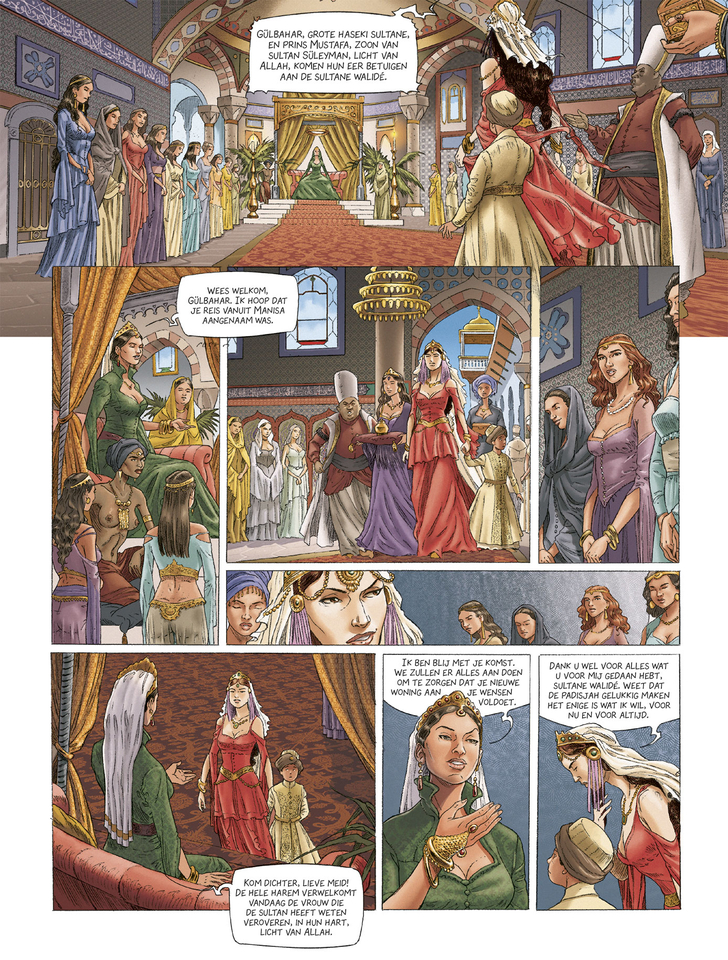 Turkije, XVIe eeuw. Het Ottomaanse Rijk is één van de machtigste rijken ter wereld, en iedereen is bang voor Süleyman de Magnifieke. In Istanboel, in het hart van het Topkapipaleis, ritselen de zijden gewaden van de haremvrouwen die zijn uitgekozen om de verlangens van de padisjah te bevredigen. Een van hen is Roxelana, een Oekraïense slavin met een stralende lach en een duizelingwekkende ambitie. Zij grijpt de kansen die ze in de harem krijgt om zich een weg te banen naar de top. Verborgen achter muren, gordijnen en sluiers scherpt deze mooie, ambitieuze jongedame haar charmes en intelligentie aan. Zij gooit alles in de strijd om haar doel te bereiken: het hart van de sultan veroveren.