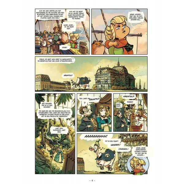 Alix en Germain zijn erin geslaagd hun broer Arsène te redden en nu zijn ze allemaal samen aan boord van de Hermione. Vanaf nu is er geen sprake meer van hun terugkeer naar Rochefort! Alle zeilen worden gehesen en het trotse galjoen volgt op volle snelheid de sporen van Macnamara en Blackfleet. De twee Engelse lafaards vluchtten midden in de strijd en voegen zich bij een nieuw fregat. De eer wordt met voeten getreden, maar hun levens zijn gered, en ze varen verder naar het eiland Marie-Galante, om het spoor naar de schat te volgen...