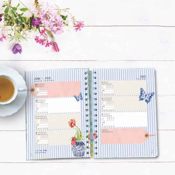 Dit is de Daphne’s Diary agenda voor 2026. Hij is gevuld met de meest creatieve ontwerpen, genoeg ruimte voor de dagelijkse planning, uitklapbare maandoverzichten, wekelijkse boodschappenlijstjes en to-do-lijstjes, handige vakjes aan de voor- en achterkant en heel veel leuke extra’s.