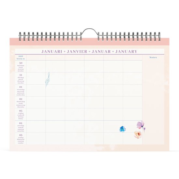 Familieplanner 2026 Lannoo Watercolours Lavendel