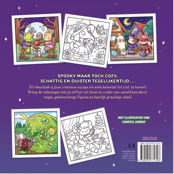 Spooky moments staat boordevol cozy kleurplaten in een grappig duistere setting. Breng de tekeningen met je stiften tot leven en creëer een wereld boordevol magie, geheimzinnige figuren en heerlijk griezelige vibes!