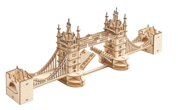 Dit model van de beroemde Londense Tower Bridge toont de twee kasteelachtige torens waar je in het echt onderdoor kunt lopen. De brugdelen hangen stevig aan een geraamte dat verbonden is met deze twee iconische torens en de centrale delen van de brug kunnen echt worden opgeklapt! 's Avonds is hij heel sfeervol met zijn ledverlichting.
