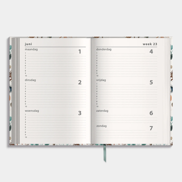 De indeling van de agenda is één week over twee pagina’s, in het binnenwerk zijn de lesuren 1 tot en met 10 alvast voorgedrukt. Uiteraard is deze agenda voorzien van een handig leeslintje. Deze schoolagenda 2026-2027 loopt van juni 2026 tot juli 2027.