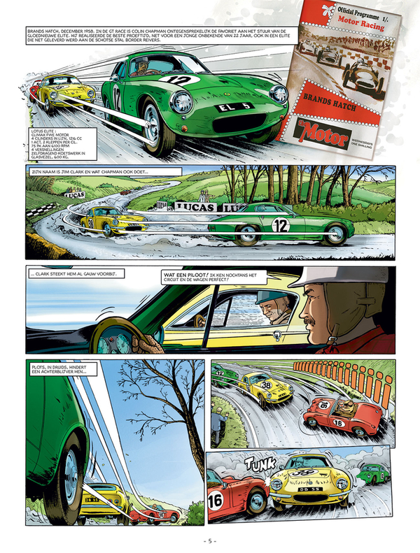 Het biografische relaas van Colin Chapman, de hippe producent van het automerk Lotus. Vanaf de geboorte van zijn eerste ambachtelijk gemaakte auto, de zege van het Formule 1 kampioenschap met Jim Clark, via de eerste overwinning met een wagen waarvan het motorblok achter in de wagen ligt in Indianapolis beschrijft dit eerste album de de pijlsnelle opkomst van het merk Lotus en van zijn uitvinder, die door sommigen aanzien wordt als de Britse Enzo Ferrari.