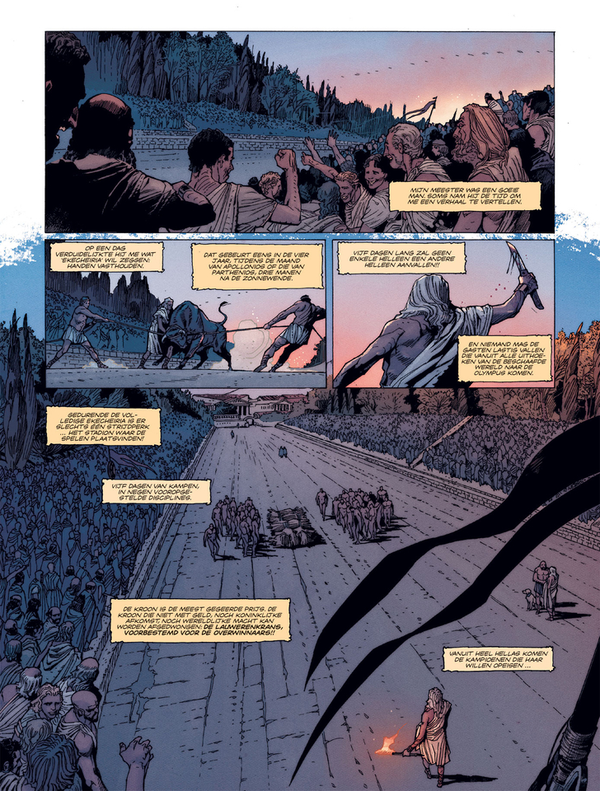 Voor de 88ste editie van de Olympische spelen (432 voor Christus) bereiden drie gladiotoren zich voor om in de arena van Pancrace te strijden. Aurelyos van Mikonos, die op zoek is naar zijn zoon, Pantarké van Olympia, een jonge ambitieuze worstelaar die gemanipuleerd wordt door zijn oversten, en Chyonis van Athena, die op het punt staat een complot te onthullen in verband met beeldhouwer Phidias, en diens meesterwerk: het standbeeld van Zeus