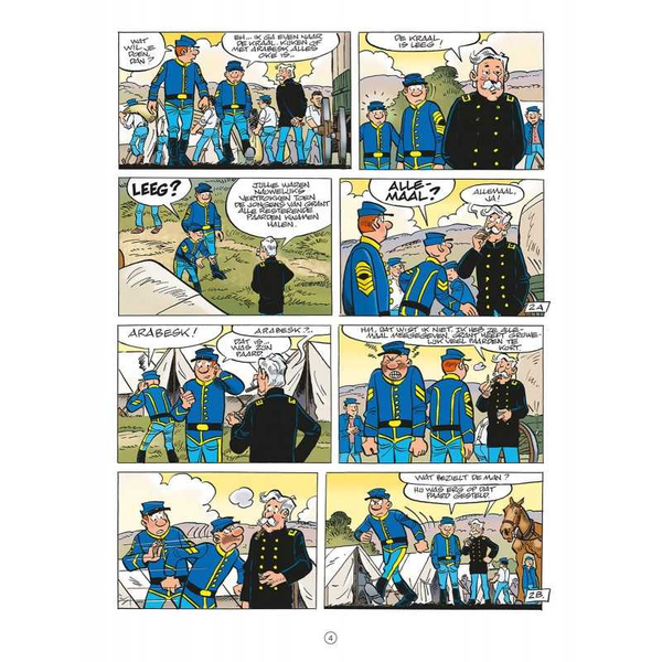 Wanneer hij terugkomt van een missie ontdekt Blutch dat Arabesk, zijn dierbare merrie die tijdens charges voor dood speelt, door een andere noordelijke eenheid is gevorderd. Uitzinnig van woede verwoest hij alles wat op zijn pad komt, met inbegrip van de officiersmess. Uiteindelijk kan hij Chesterfield overtuigen samen zijn paard te gaan zoeken. Wat volgt is een gevaarlijke en hilarische roadmovie, waarin de gruwelen van de Burgeroorlog zichtbaar worden. Onderweg ontmoeten ze een oude vijand en zullen ze een paar keer nipt aan de dood ontsnappen… Dit is een album om van te genieten want Lambil toont opmerkelijker dan ooit dat hij de kunst van het paarden tekenen onder de knie heeft. Maar ook omdat het de allerlaatste De Blauwbloezen van Raoul Cauvin is, die met zijn 64 avonturen méér dan stripgeschiedenis heeft geschreven.