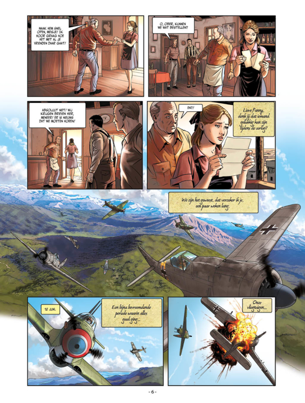 Tekenaar Giuseppe De Luca weet op een Hugaultiaanse manier vliegtuigen en ander rollendmaterieel te tekenen. - Stripspeciaalzaak.be Juni 1943. De Franse piloten beginnen hun weg te vinden aan het Russische front. Ze zijn gewend geraakt aan de vliegtuigen en de omgeving, zowel de geografie als de mensen. De komst van jonge piloten geeft weer nieuwe energie aan de groep die wat is afgemat door de geduchte Russische winter en de eerste slachtoffers. Maar oorlog blijft oorlog... Hoewel ze de indruk hebben dat het beter gaat, wordt het in feite alleen maar erger voor onze helden die zullen moeten deelnemen aan de Slag om Orjol, een van verschrikkelijkste tijdens de Tweede Wereldoorlog...
