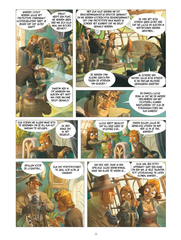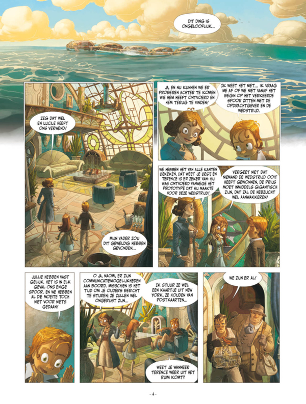 Na heel wat jaren in een kostschool ver van hun familie zijn Emilio en Naomi weer thuisgekomen in het familielandhuis waar ze te horen krijgen dat de vader van Emilio, Alexander, is verdwenen. Om hem terug te vinden hebben ze, geholpen door Amelia en Terence, zijn prototype nagebouwd en zich onder zijn naam ingeschreven voor de Jules Verne-wedstrijd. Aan boord van de trans-Atlantische reis die ze naar New York brengt waar de wedstrijd van start zal gaan, blijkt het een veelbewogen oversteek te worden. Met de dreiging van de derde spil, de wereldoorlog die steeds heftiger wordt en de onbetrouwbare deelnemers krijgen onze vrienden het nog druk. Ondanks alles zijn ze vastbesloten om de geheimen te ontrafelen die ze op het spoor zijn. Wat ze niet weten, is dat wat ze gaan ontdekken het weinige dat ze weten op zijn kop zal zetten! Dit derde deel sluit de eerste cyclus avonturen van Emilio en Naomi af.